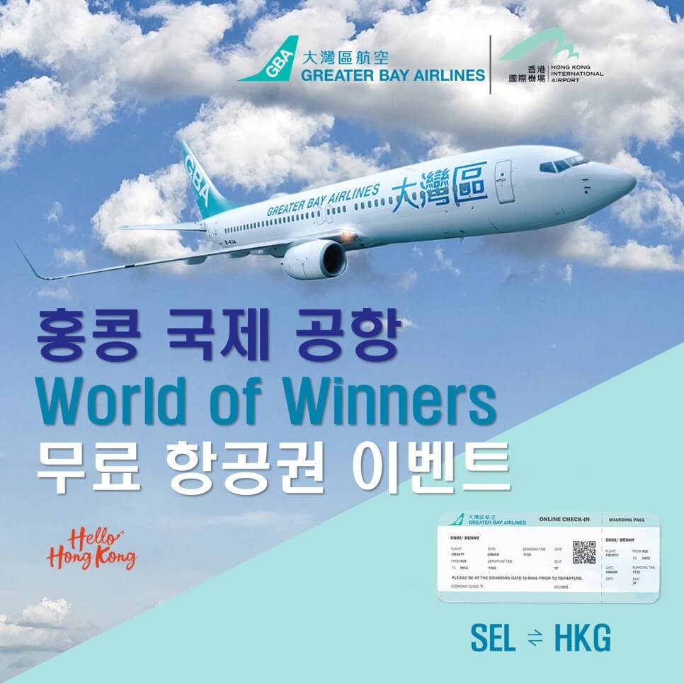 그레이터베이 항공 Greater Bay Airlines은 서울-홍콩 무료 왕복 항공권 200장을 제공합니다. 티켓은 추첨을 통해 2회 배포되며 참가자를 원한다면 위의 링크에서 등록할 수 있습니다.